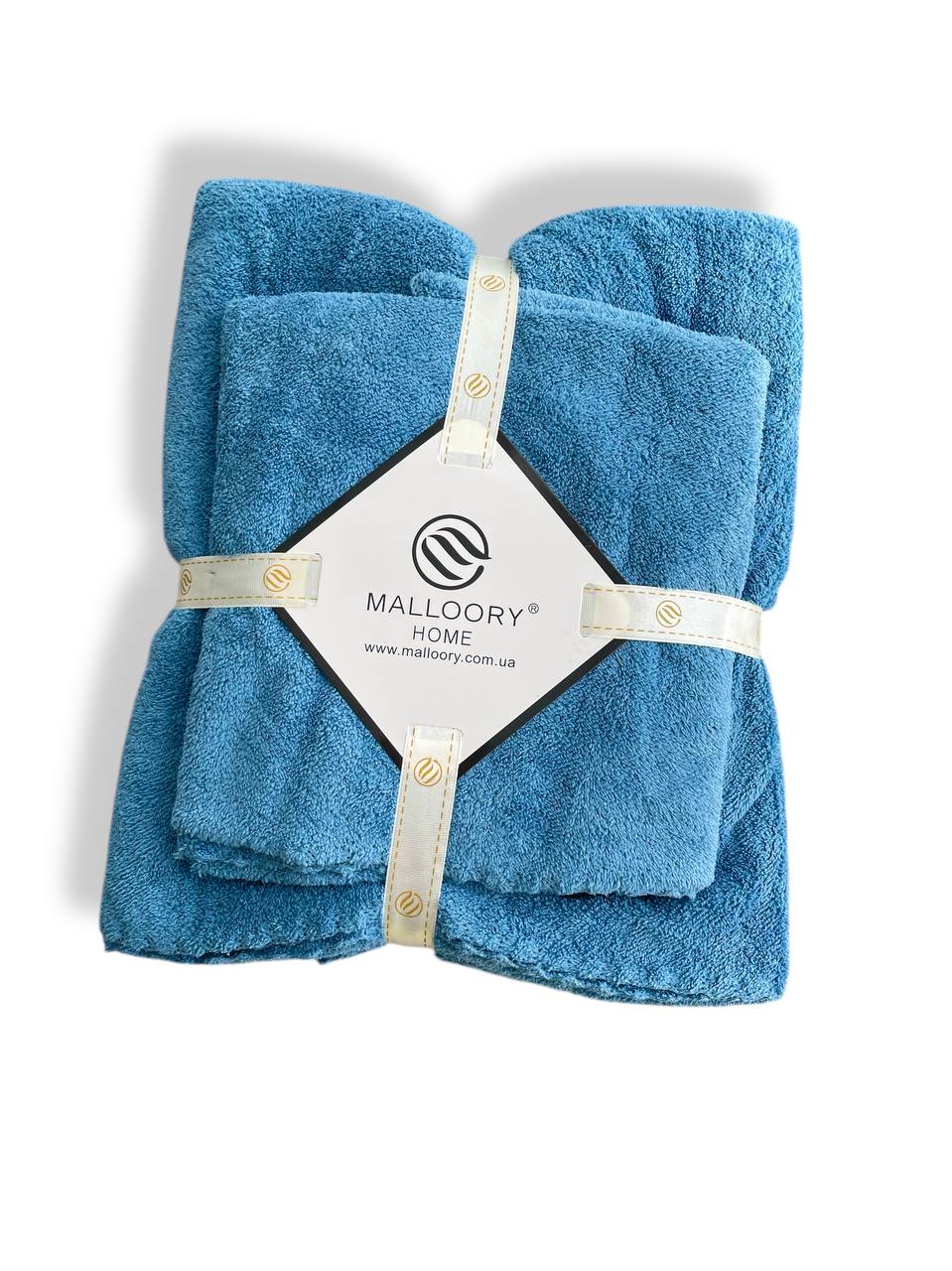 21-5 Комплект рушників однотонний баня+лице (мікрофібра) синій – банний 140×70 см + для обличчя 100×50 см