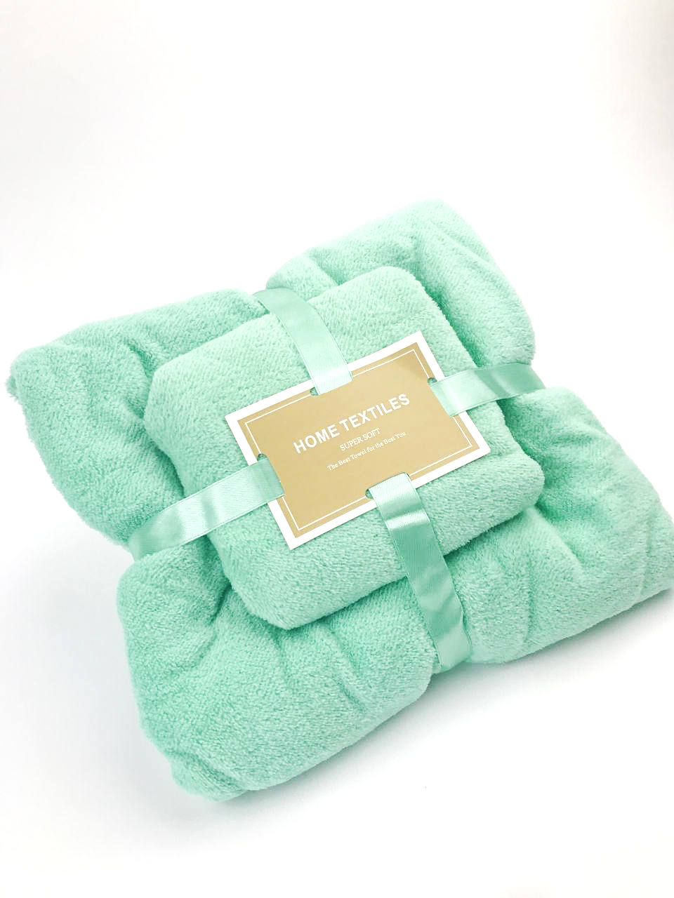 Комплект рушників однотонний Home Textiles (мікрофібра) м'ятний – банний 140×70 см + для обличчя 35×75 см