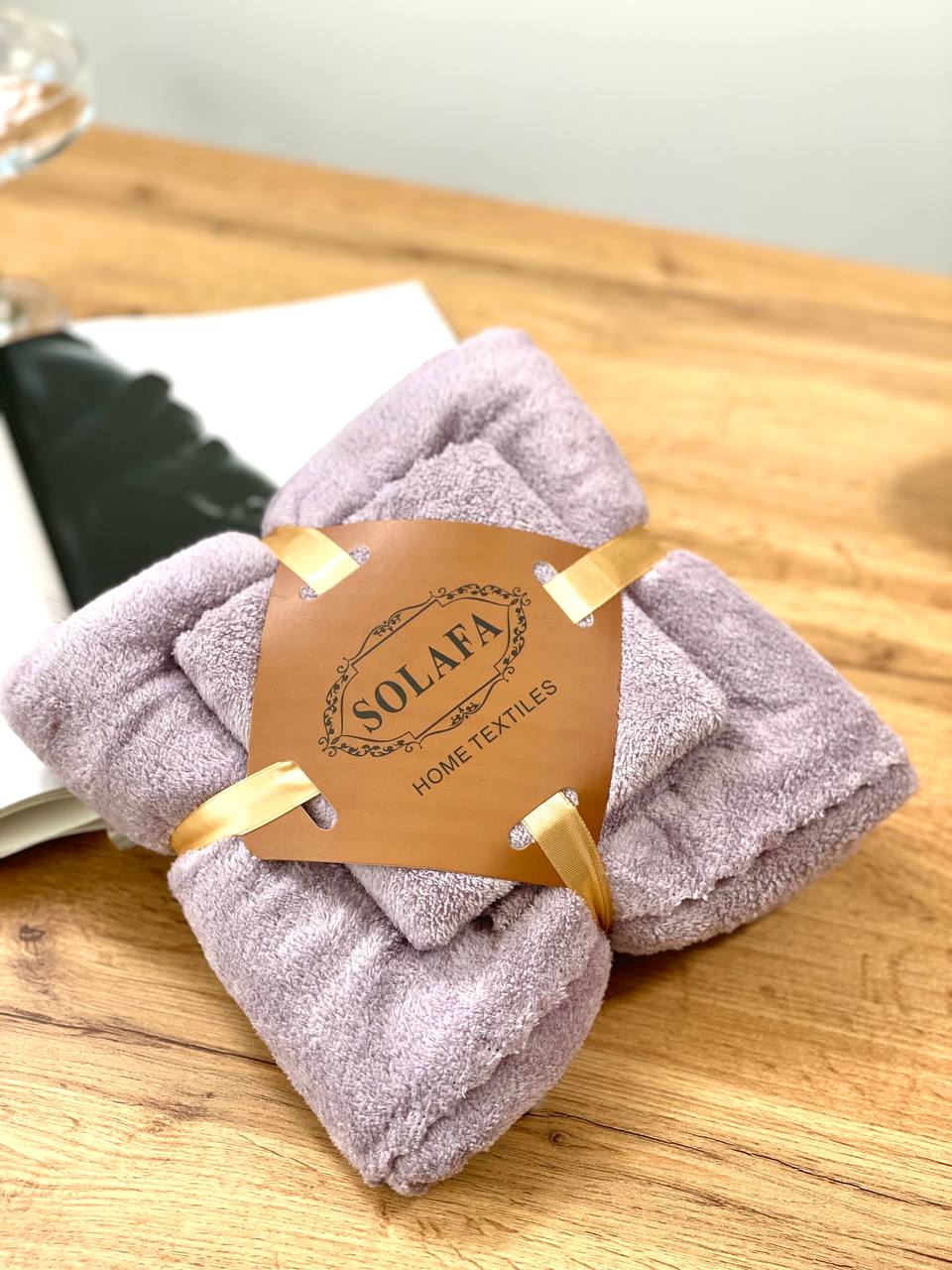Комплект рушників однотонний Solafa (мікрофібра) ліловий – банний 140×70 см + для обличчя 35×75 см
