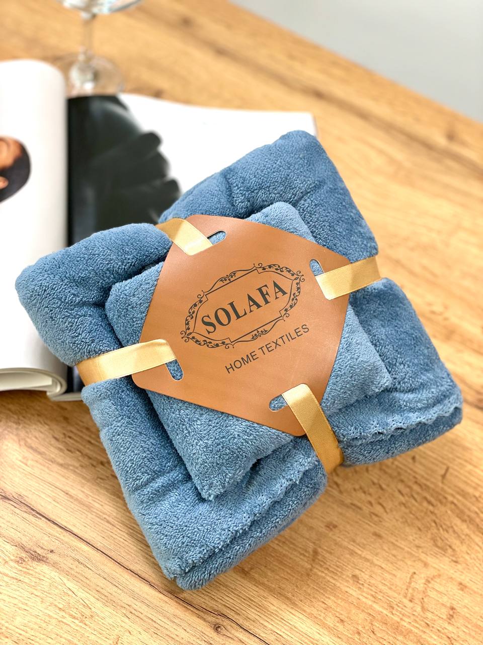 10-8 Комплект рушників однотонний Solafa (мікрофібра) синій – банний 140×70 см + для обличчя 35×75 см