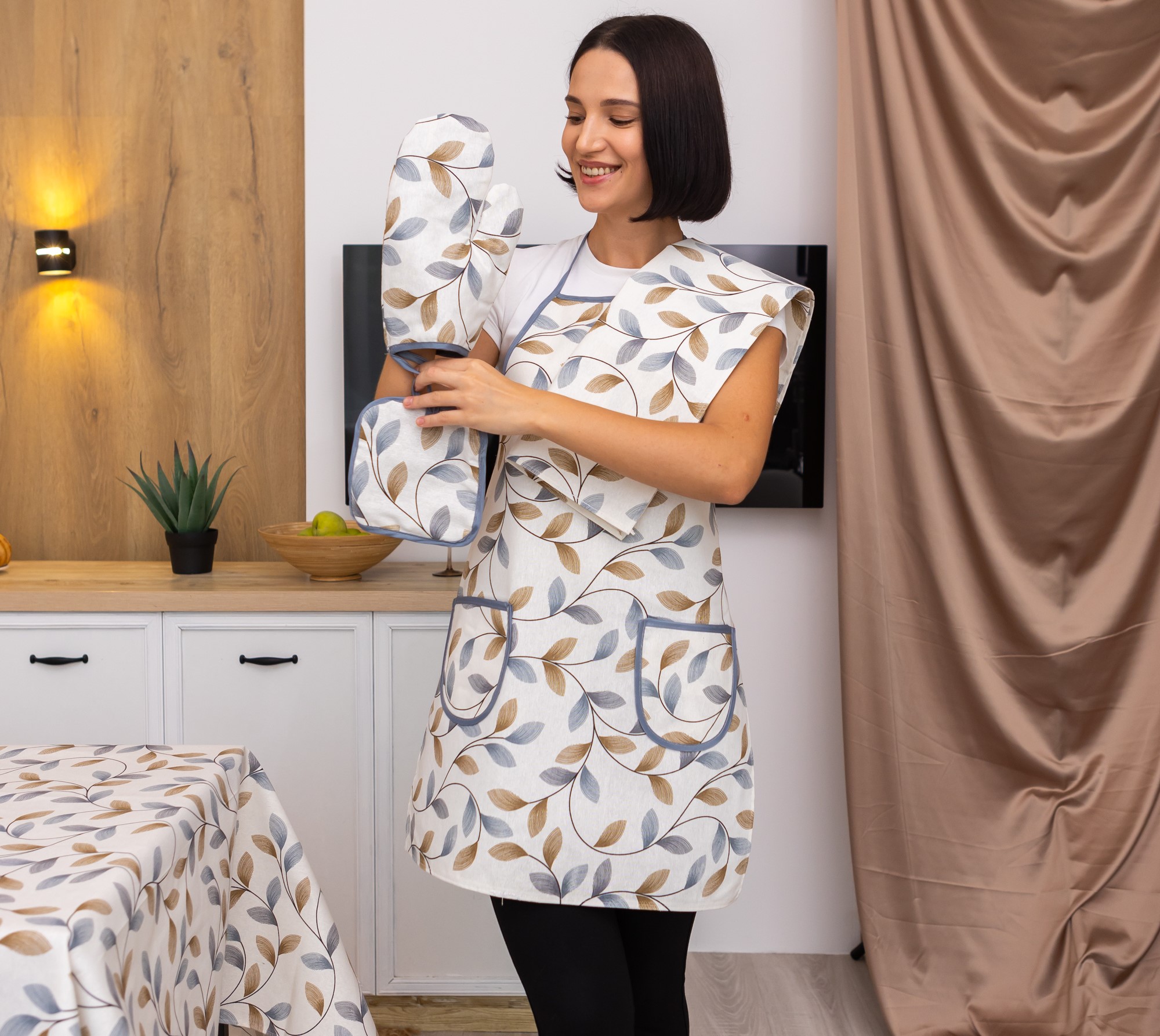 Кухонний набір "Листочки" 4 предмета – захист від гарячого і плям