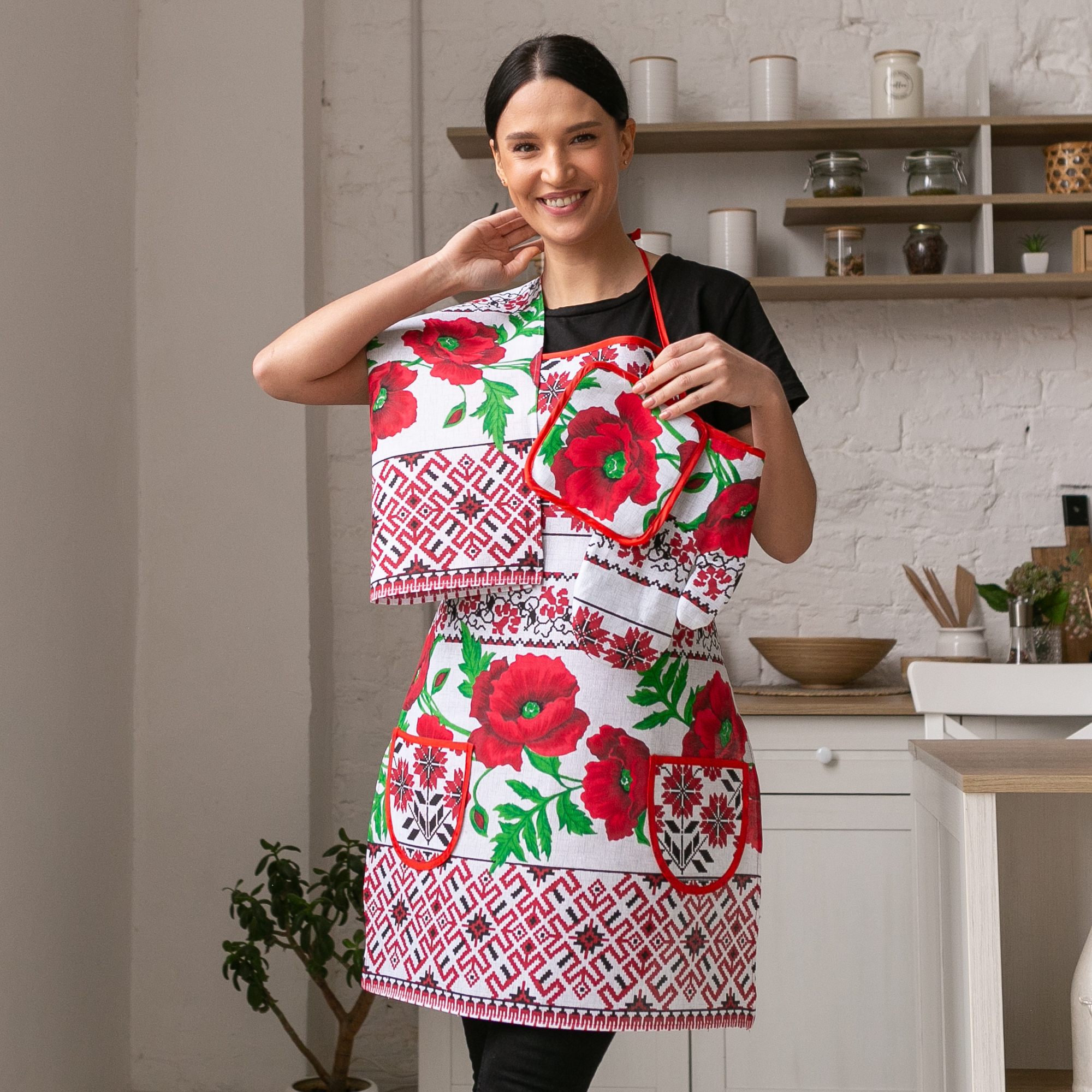 Кухонний набір "Маки" 4 предмета – захист від гарячого і плям