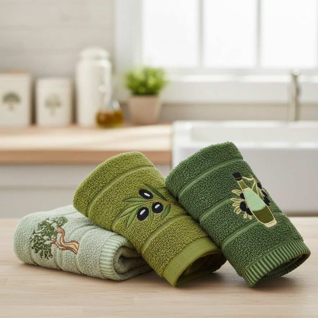 232 Набір кухонних махрових рушників Оливкове дерево (3 шт.) 75х35 см - м’які, щільні, довговічні