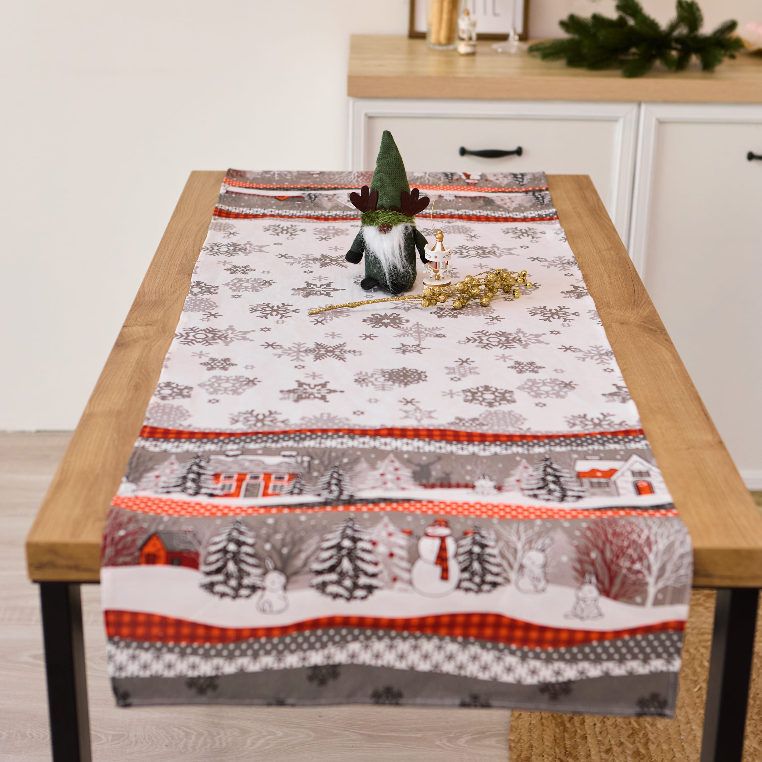Новорічна скатертина-доріжка (ранер) "Сніговик" 140 х 47 см - елегантний та практичний текстиль для вашої кухні