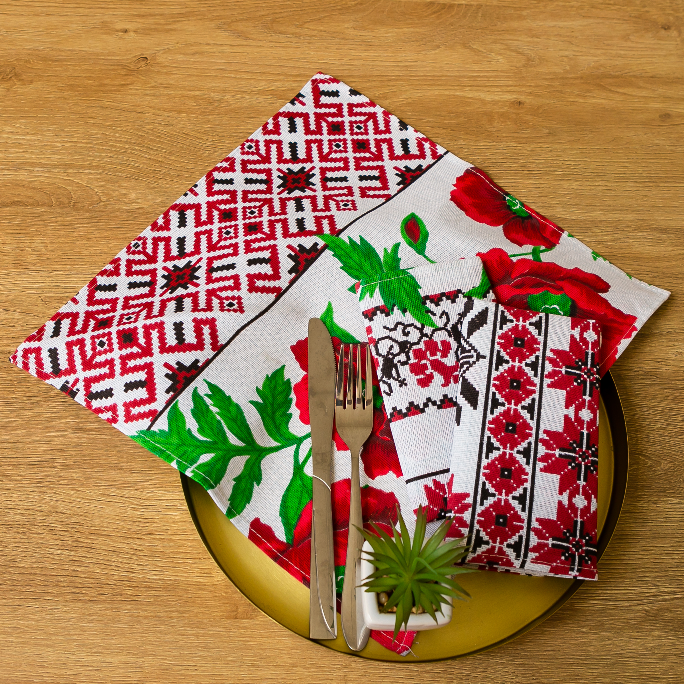 Серветки лляні "Маки" (комплект 4 шт) - 35×35 см, натуральний текстиль для сервірування столу
