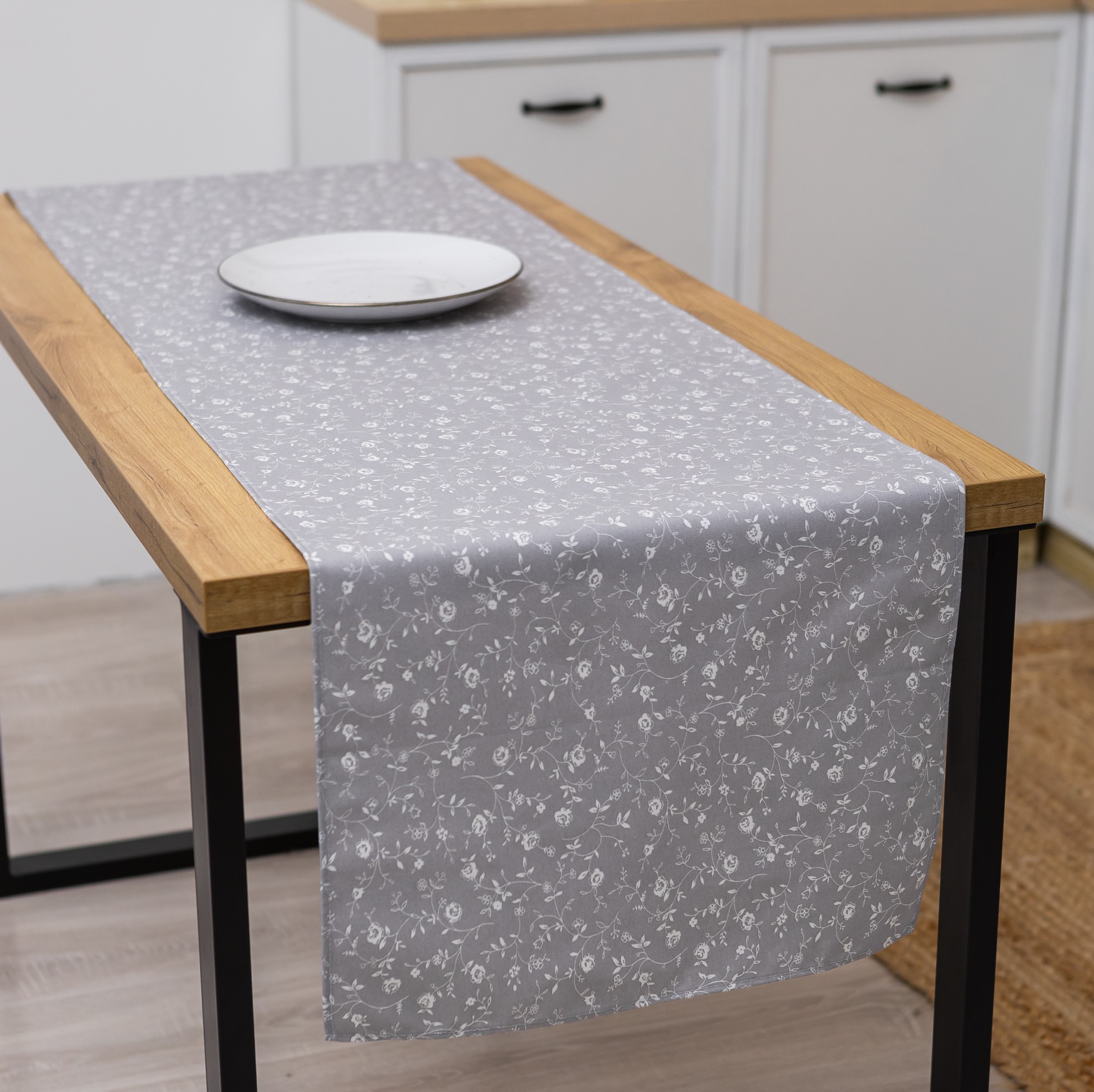 Скатертина-доріжка (ранер) "Дика троянда" (сіра) 180х47см, водовідштовхувальний текстиль – практичний захист і декор