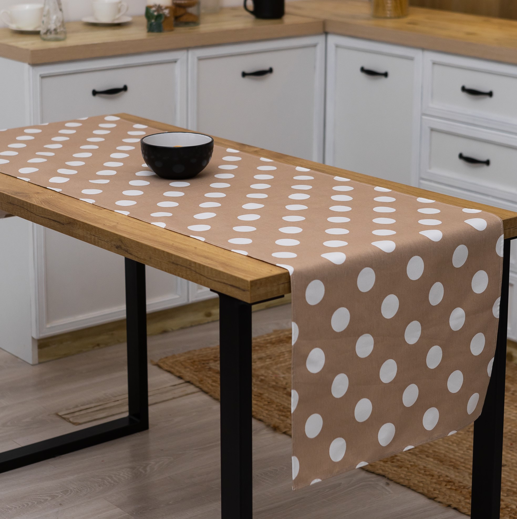 Скатертина-доріжка (ранер) "Великий горошок" (бежева) 180х47см, водовідштовхувальний текстиль – практичний захист і декор