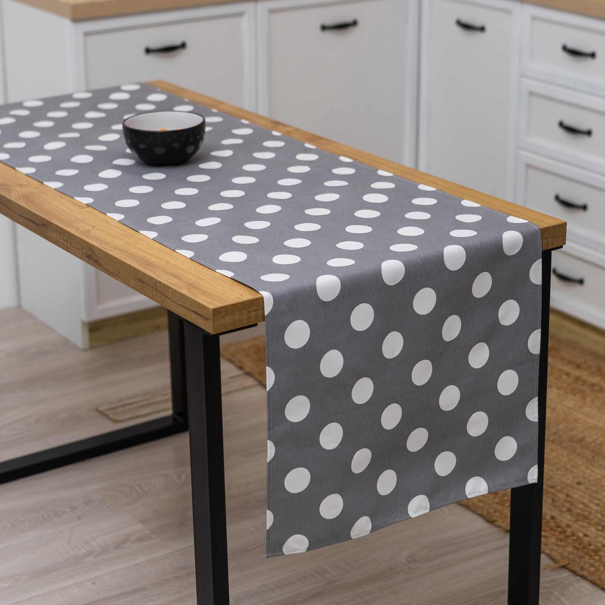 Скатертина-доріжка (ранер) "Великий горошок" (сіра) 180х47см, водовідштовхувальний текстиль – практичний захист і декор