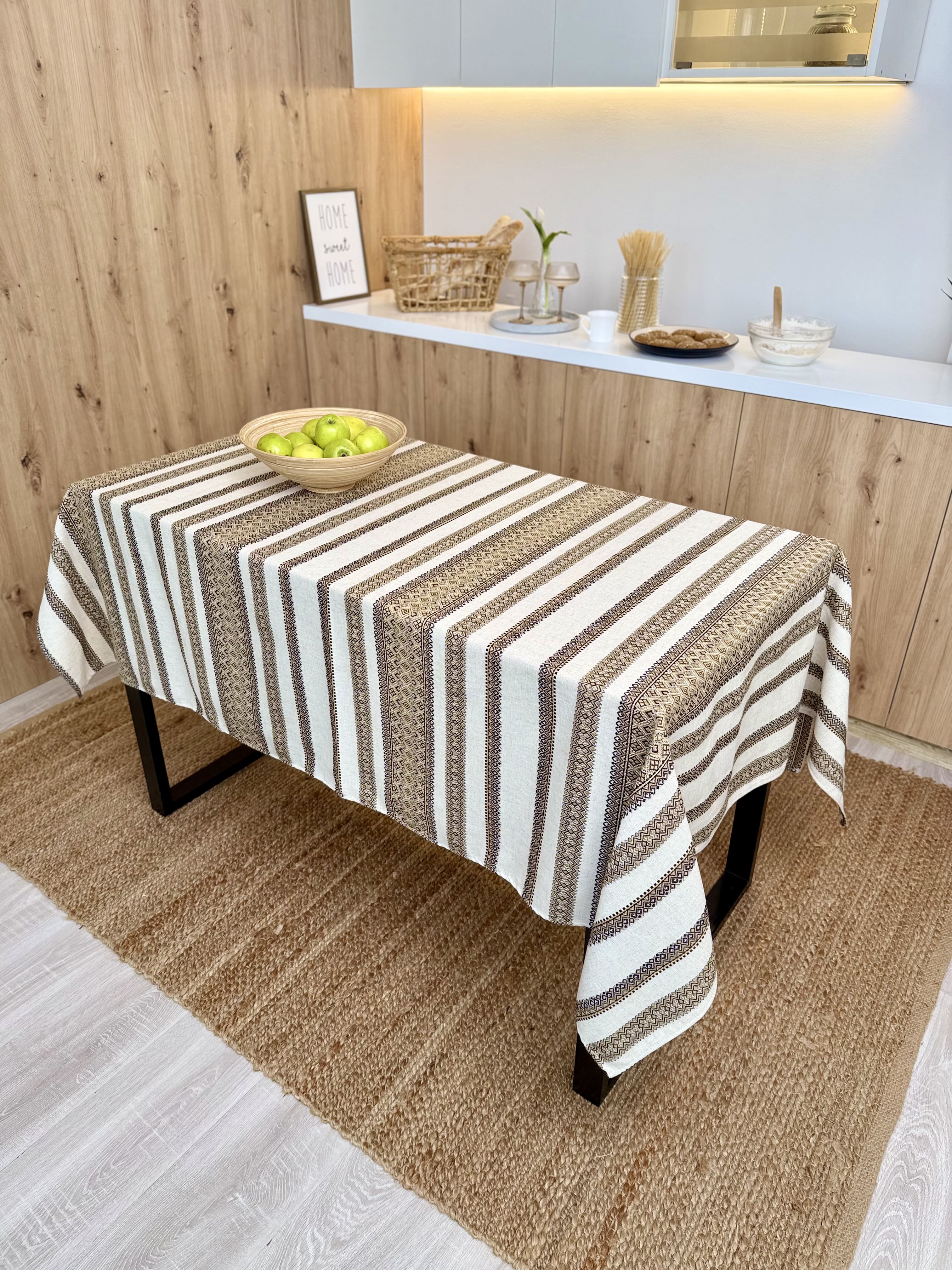 Скатертина з українським вишитим орнаментом, 150 х 220 см – етностиль для дому та свят (клн1-3-22)
