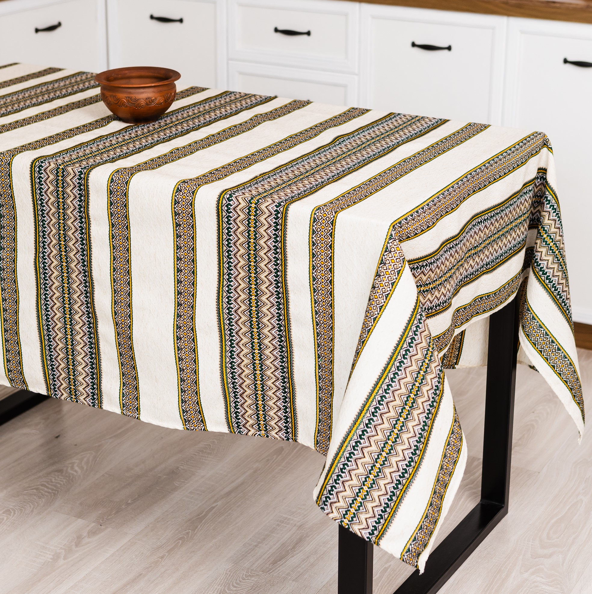рнд1-131-15 Скатертина з українським вишитим орнаментом, напівбавовна 150 Х 150 см – етностиль для дому та свят (рнд1-131-15)