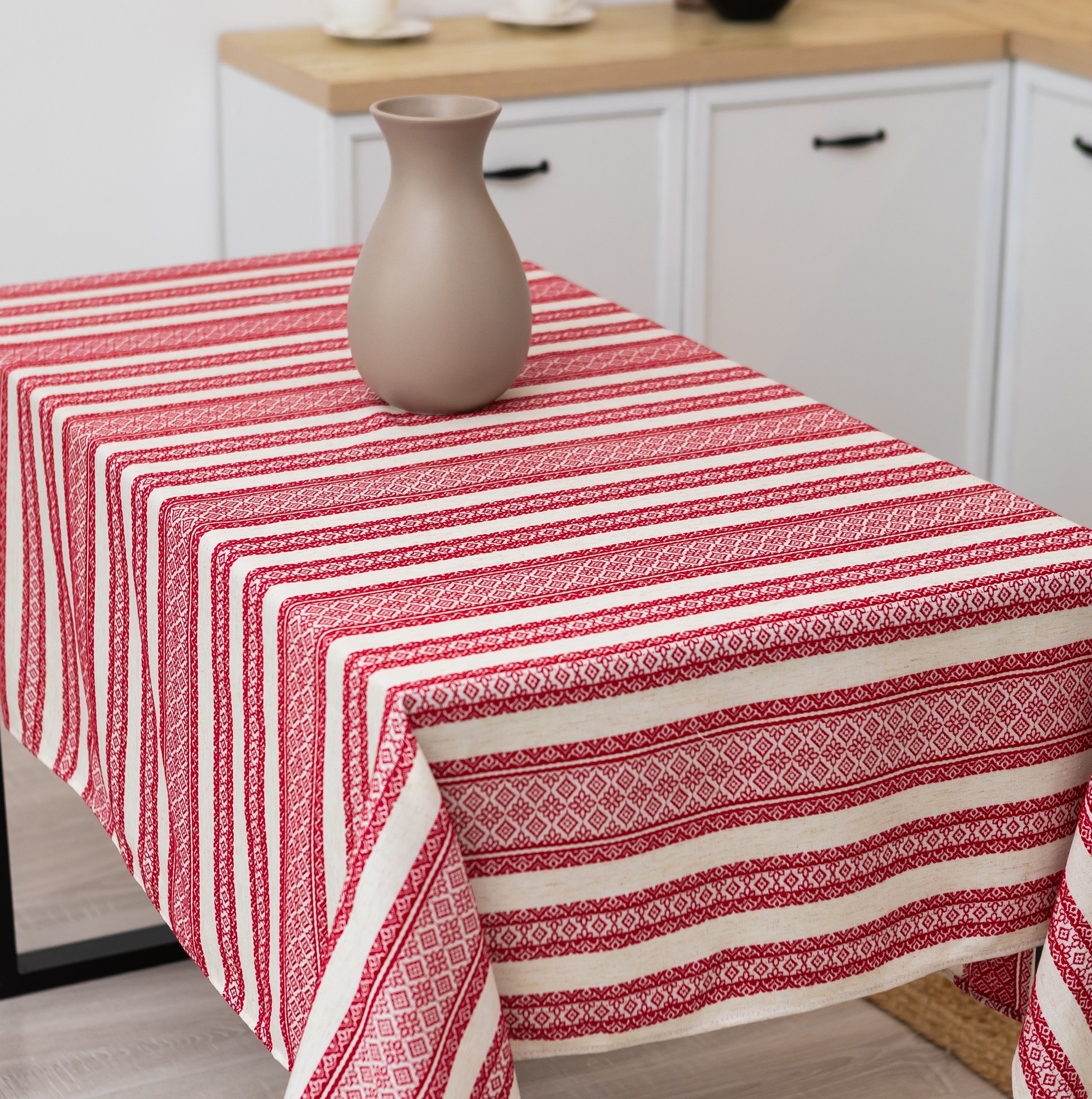 Скатертина з українським вишитим орнаментом, напівбавовна 220 Х 150 см – етностиль для дому та свят (кет2-1-22)