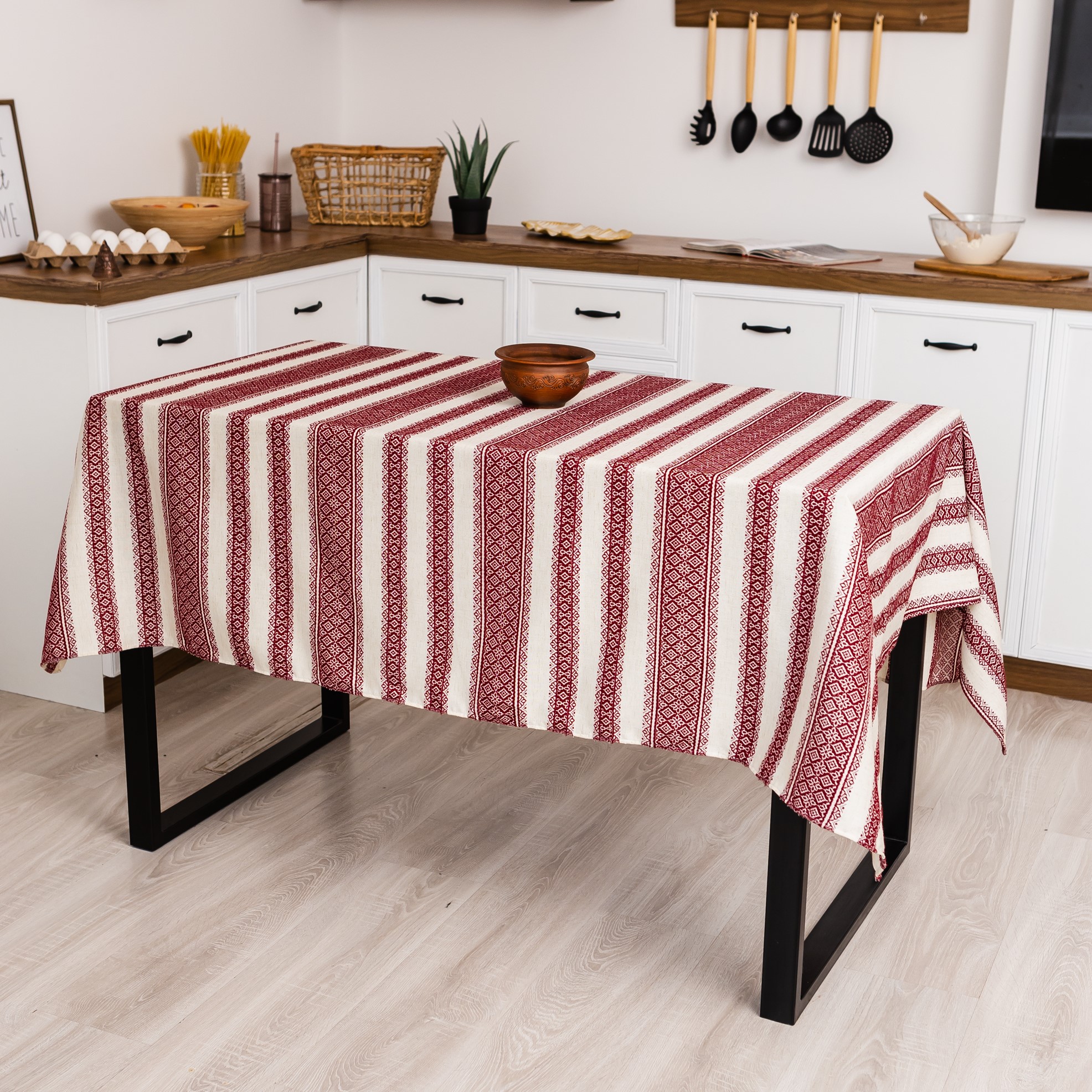 Скатертина з українським вишитим орнаментом, напівбавовна 220 Х 150 см – етностиль для дому та свят (кет2-5-22)