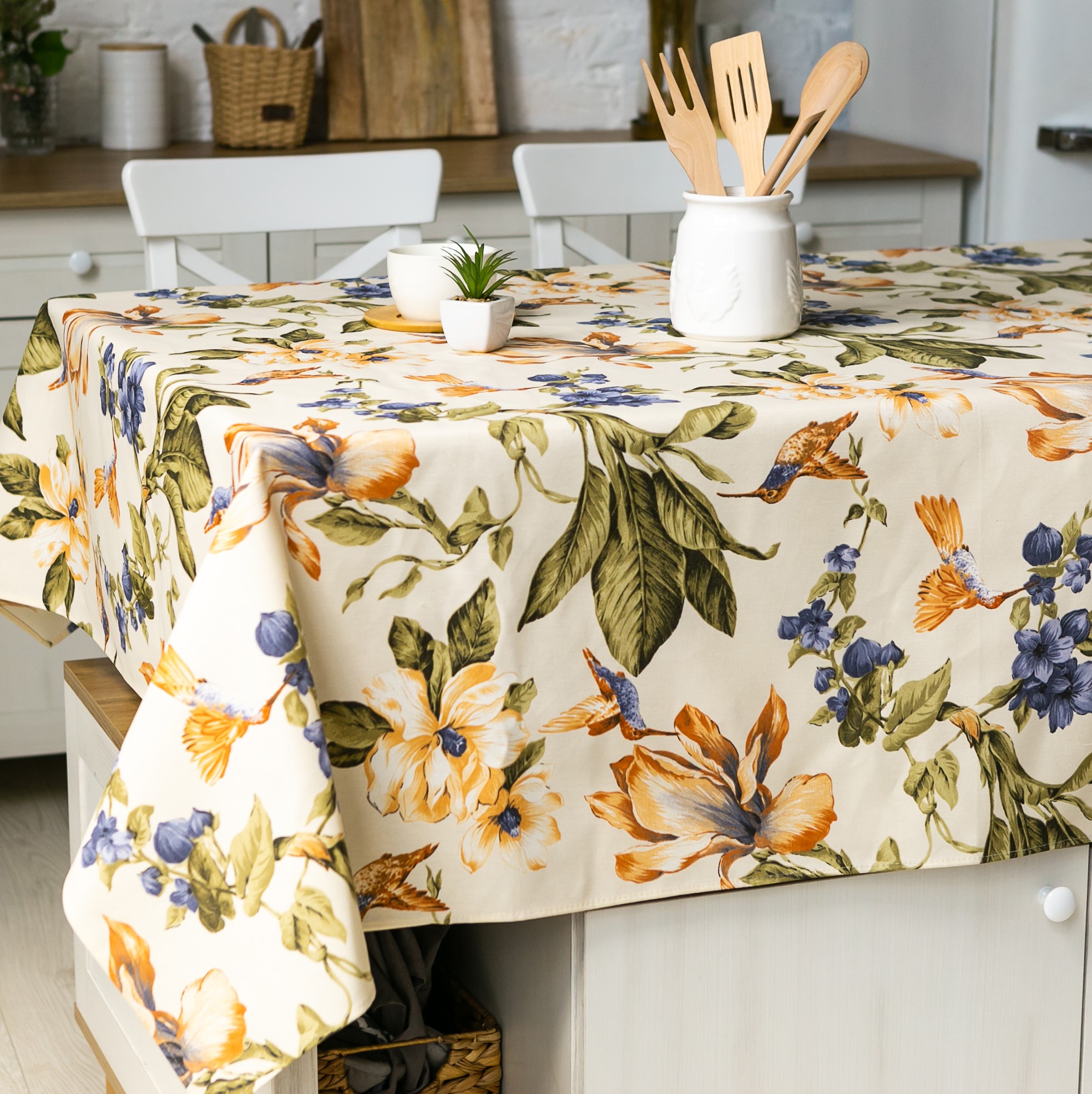 Скатертина з водовідштовхувальним покриттям "Колібрі пудра" 240 Х 150 см + 8 серветки – стійка до плям і води