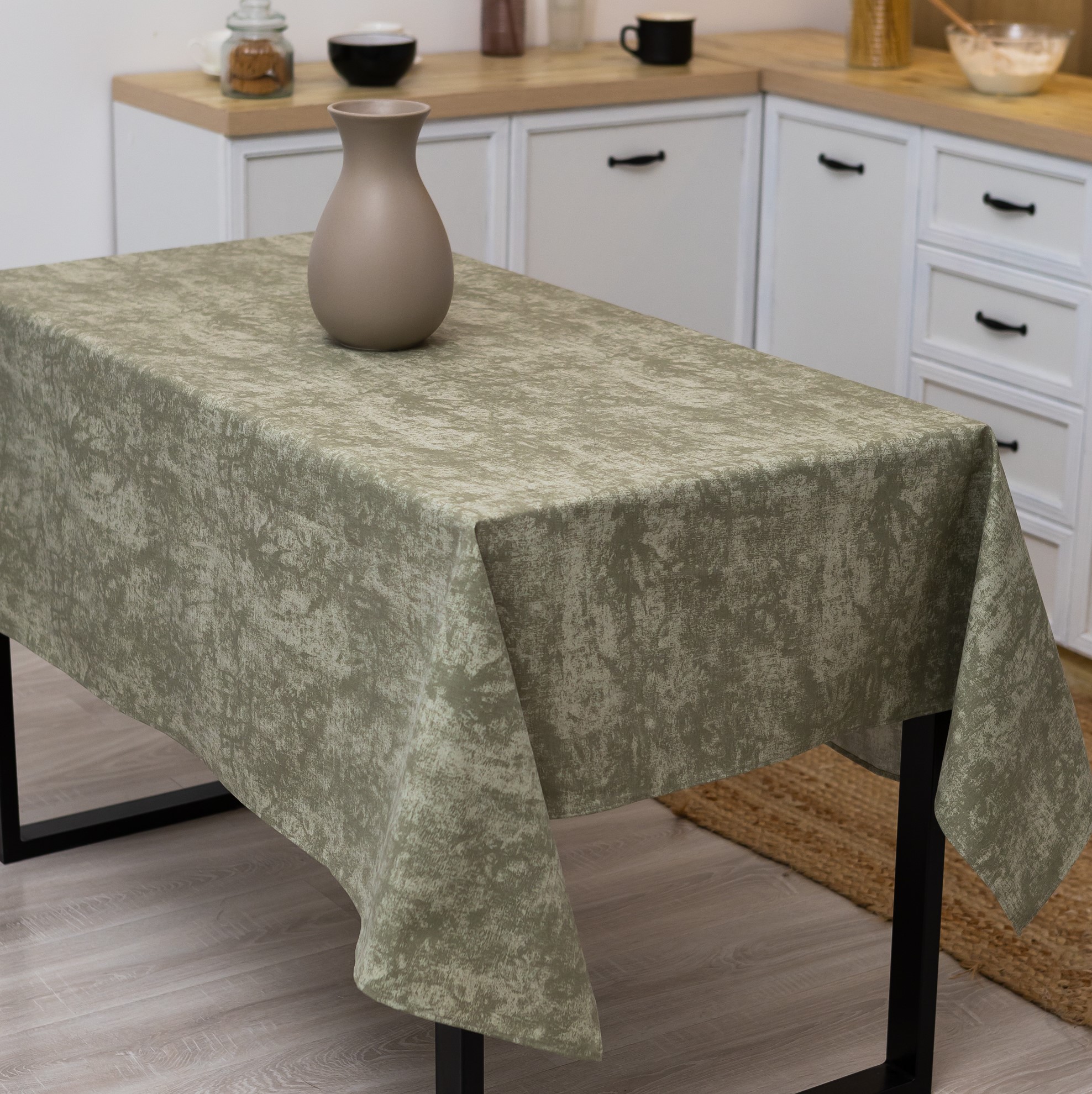 Скатертина з водовідштовхувальним покриттям "Мармур фісташковий" 240 Х 150 см + 8 серветки – стійка до плям і води