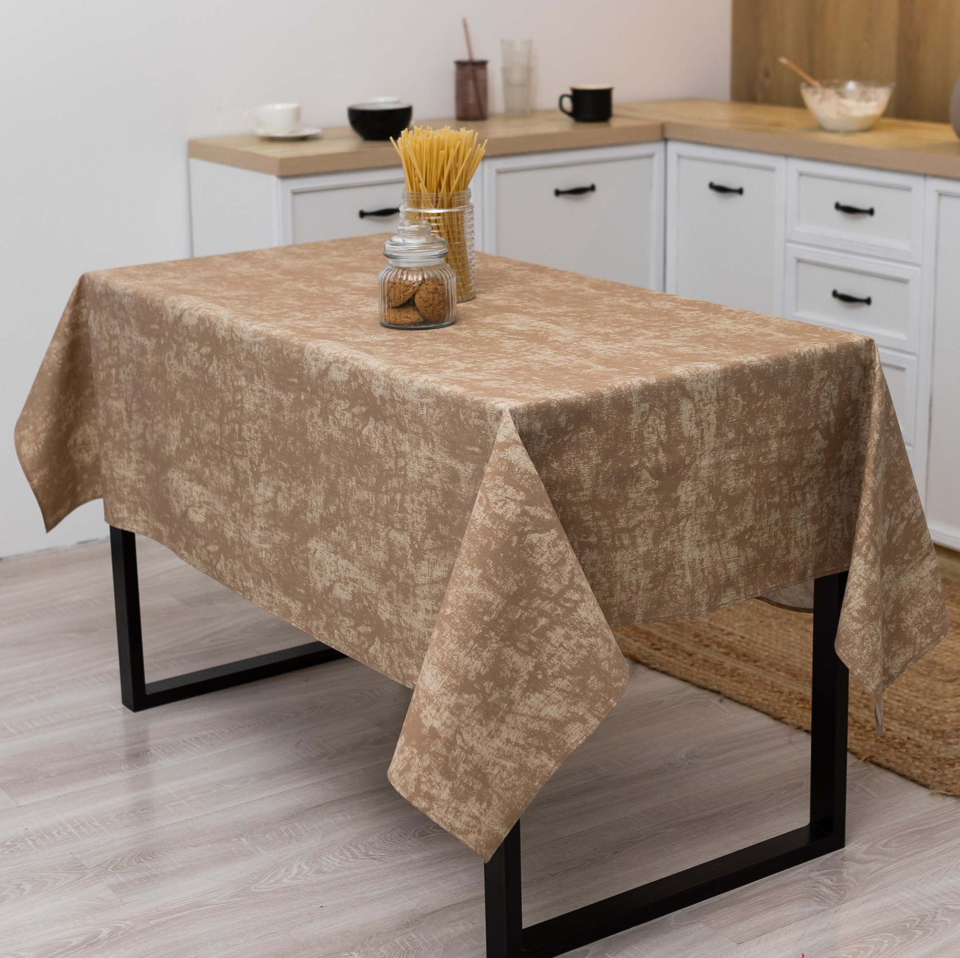 Скатертина з водовідштовхувальним покриттям "Мармур пісочний" 240 Х 150 см + 8 серветки – стійка до плям і води